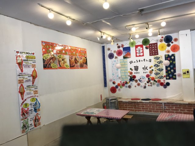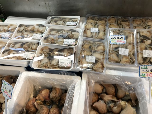 汐見通りの対面にも魚屋と食堂あり。(7:00-16:00,水曜定休)(P100,無料)