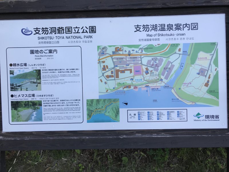 ポロピナイ園地は支笏湖の眺めがよく、休憩には最適。食堂あり。遊覧船、ボート、釣などが楽しめます。(P50,無料)