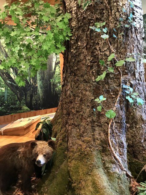 実物大パネルなどが展示。ヒグマの剥製、野鳥のキーホルダーなどを販売。(9:00-17:30,入場無料)