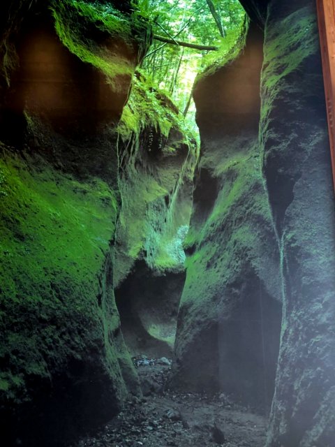 密生し美しい。2014年に「日本の貴重なコケの森」選定。第1洞門は420m、第2洞門は600m。苔の洞門は落石や崩落で現在閉鎖中(見学不可)