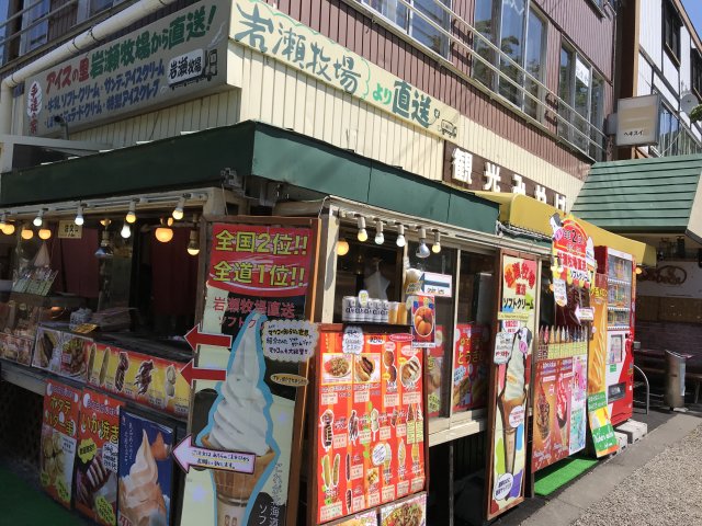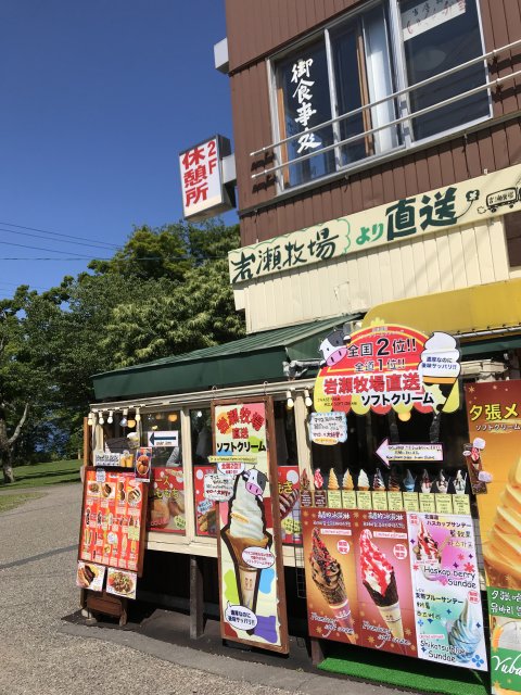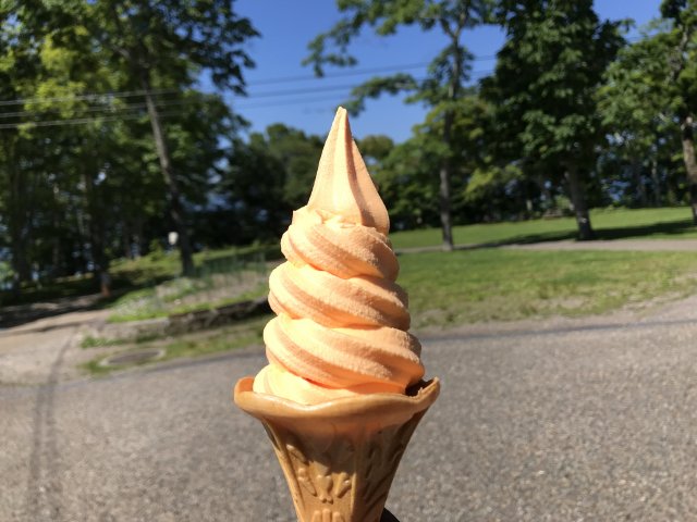■湖畔の支笏湖温泉街にある「北のうまいもん店碧水」では、牧場直送のソフトクリームの他、いろいろなメニューあり。夕張メロンのソフトクリームは、メロンの味が口いっぱいに広がり、とてもおいしかった。