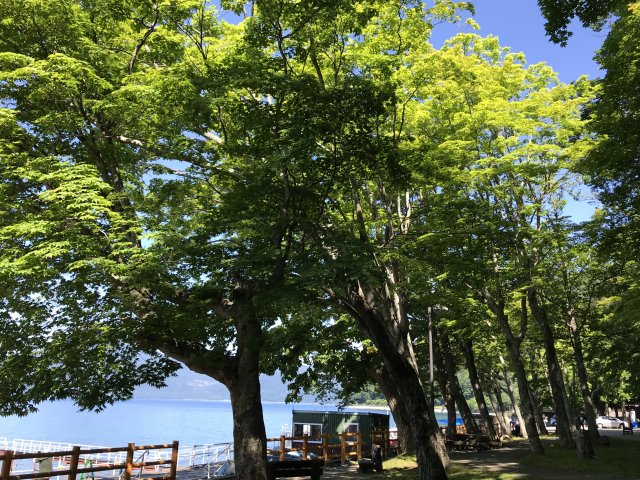 ・支笏湖湖畔には「親水公園」があり、緑豊かな森では小鳥のさえずりが聞こえてきます。湖から爽やかな風が吹き、ゆっくりとした時間が経過します。