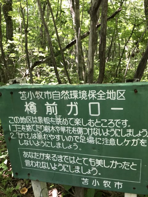 ヒグマの生息地で、クマには要注意。朝夕の入林は避け、音を出して歩くことをお勧めします。ロープは張られていますが、滑って下に降りた形跡がありました。夏場は草木が生い茂り、見えずらい。この日、ガローには誰もおらず、