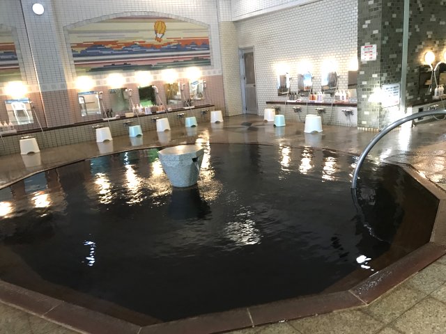 ・大浴場は八角形の湯船。植物性モール温泉はぬるっとした感じの温泉で、色は黒ぽい茶褐色。無臭。最初は少し抵抗があったが馴れると肌によい感じがした。