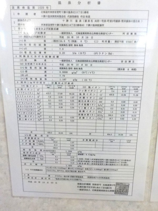 十勝川温泉はモールの湯。植物が長年堆積した亜炭層から湧き出る温泉で、植物性有機物のモールの湯。十勝川の地下500〜700mから湧き出る55〜60℃の温泉。「モール」は亜炭を示すドイツ語に由来。