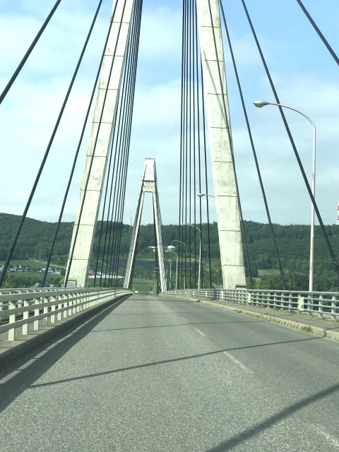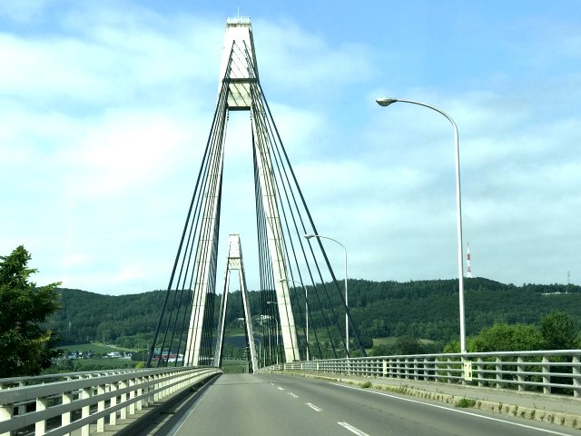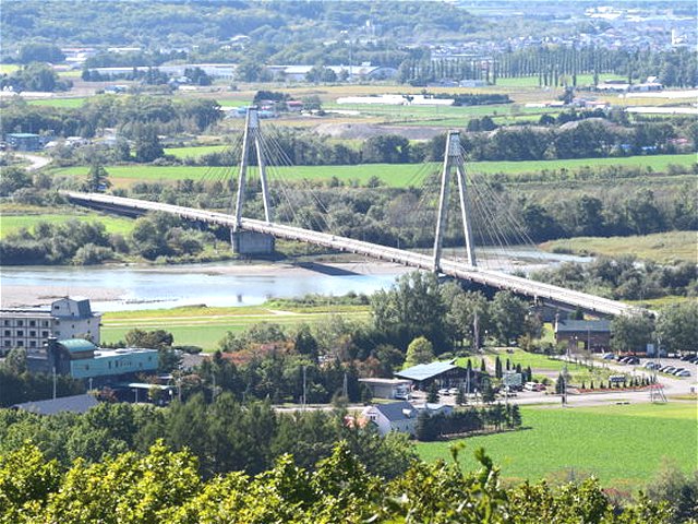 白鳥大橋といえば港にかかる「室蘭大橋」(橋長1380m,高さ58m)ですが、十勝平野にかかる「十勝中央大橋」とはまた雰囲気が違う。北海道では石狩川の次に十勝川が流域面積が広い。国内で6位の河川で、大雪山系の十勝岳を