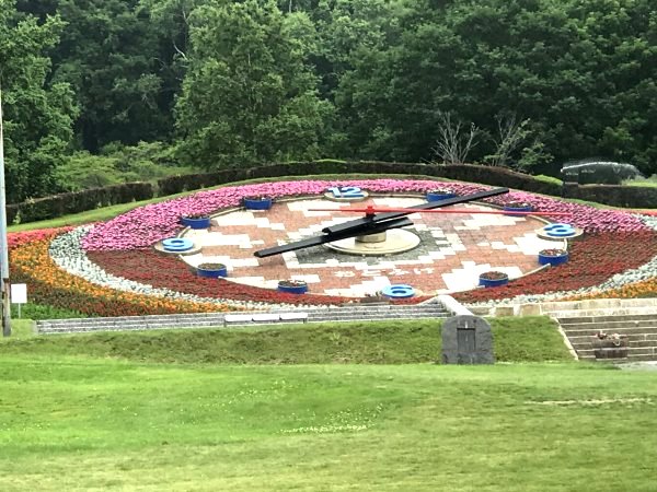 ■十勝川温泉近くの小高いところに「十勝ヶ丘公園」あり。宿から車約5分。直径18m、秒針の長さ10mの大きな花時計「ハナック」があり。