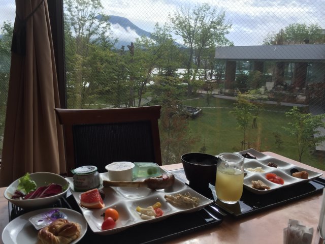夕食は18:00ー21:00、朝食は7:00-9:00。阿寒湖や雄阿寒岳を望みながらの朝食も良かった。料理の写真は数枚のみ掲載。