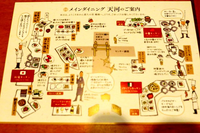 夕食・朝食ともバイキング。バイキング会場は2Fの「天河」。北海道の海の幸、山の幸など、多彩な和洋中のパリエーションで地元産のメニューなど食べきれない品数があり、どれも美味しかった。