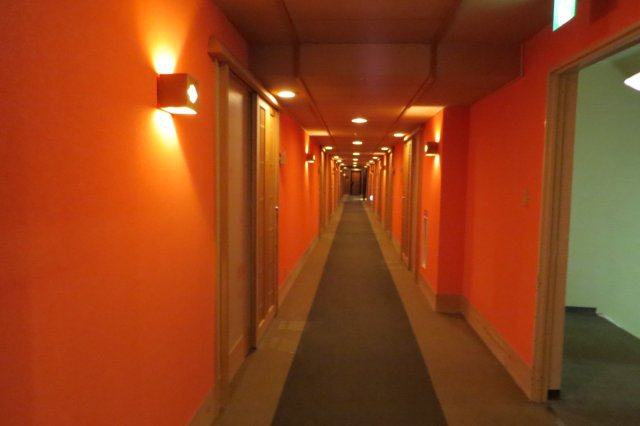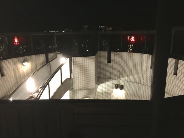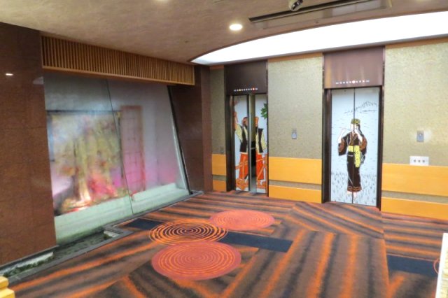 「空中露天風呂・天女の湯へ」(8F→RF)(阿寒湖・鶴雅にて)