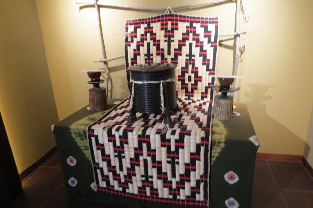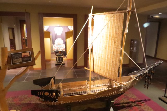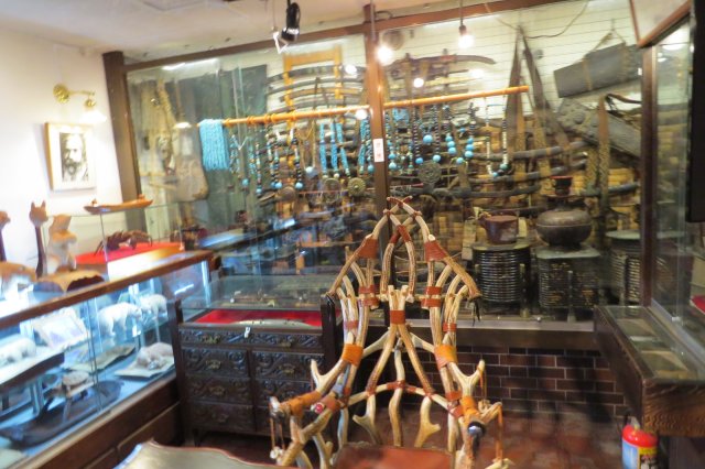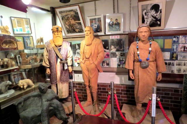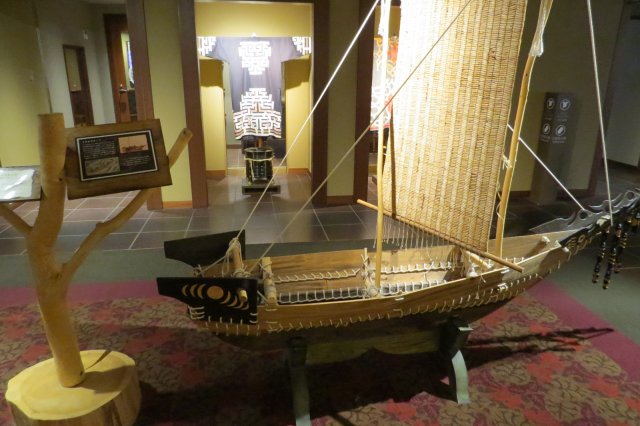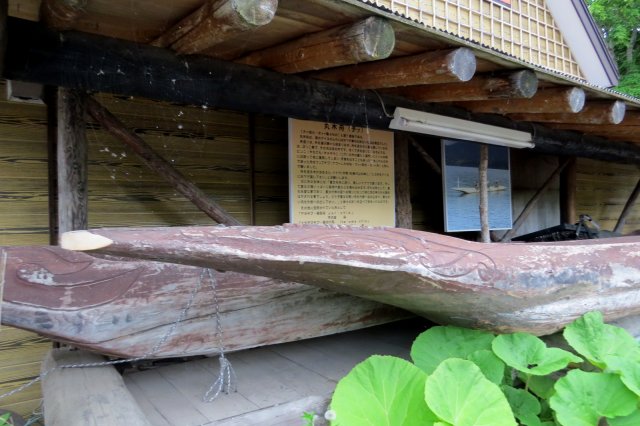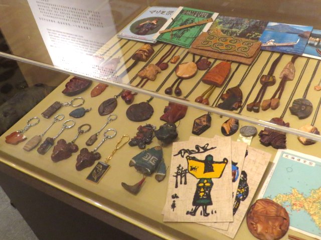「アットゥシ」(樹木皮の衣)、外洋船「イタオマチプ」(板綴り船)模型、「イクパスイ」(祭具)、「シトキ」(玉飾り)、木彫などを展示。(9:00-17:00,\500/大人,\250/小人)