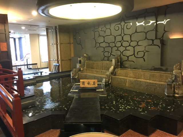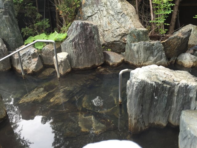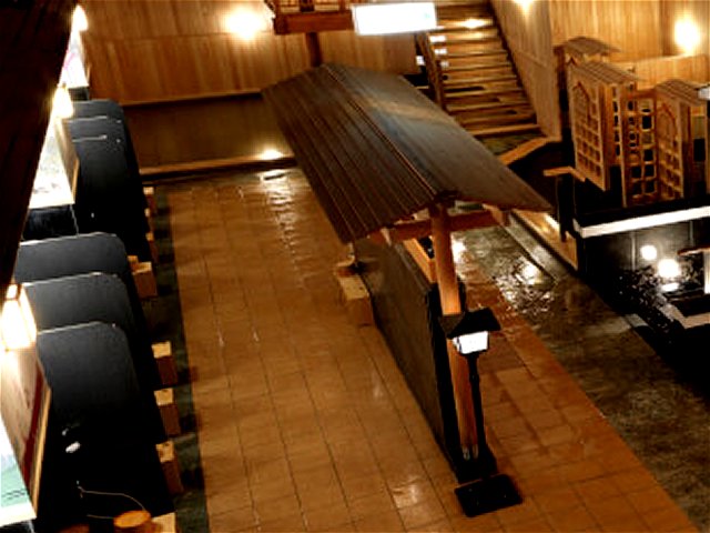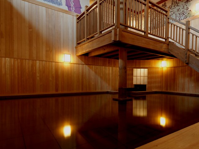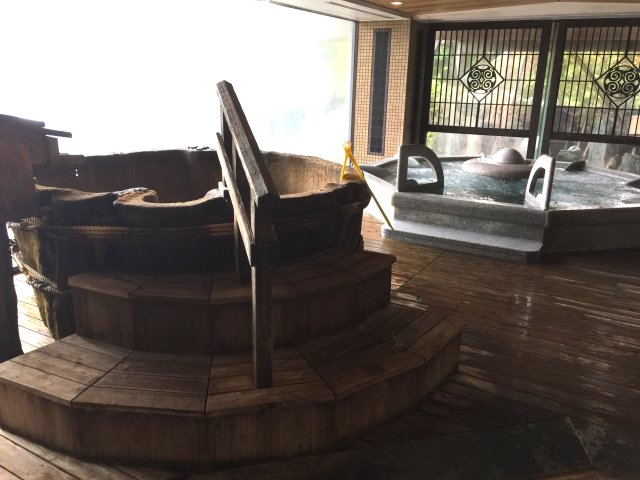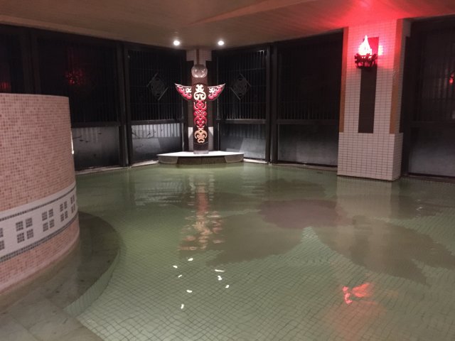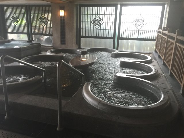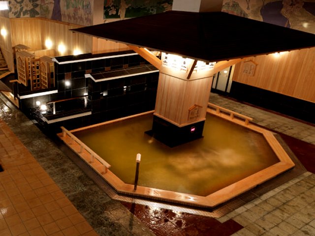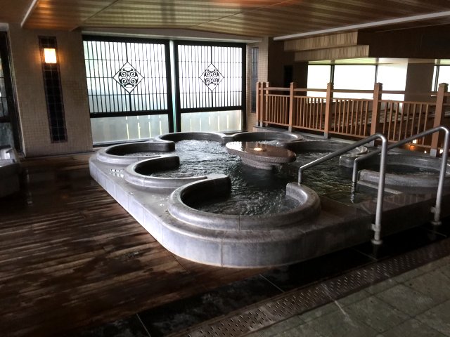 2)B1F;脱衣所、内湯;内風呂(あわの湯)、歩行湯、檜風呂、洞窟風呂、奥に寝湯、ジャグジー、サウナ(高温・低温)、水風呂、打たせ湯、洗い場など。