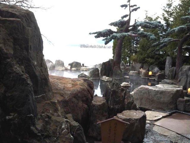阿寒湖に接した1Fの露天岩風呂の「庭園露天風呂」など7種類の大浴場と、8Fの「天の原」展望風呂は最高。阿寒湖と阿寒連山が一望できます。(\250/入湯税)