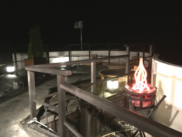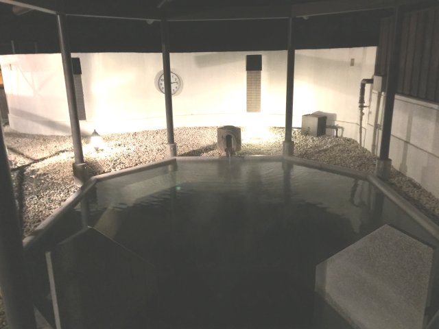 ・夜はまだ寒いためかお湯がぬるく感じました。温度39-40℃?。八角風呂は寒さ対策で薄いビニールがかけられていました。