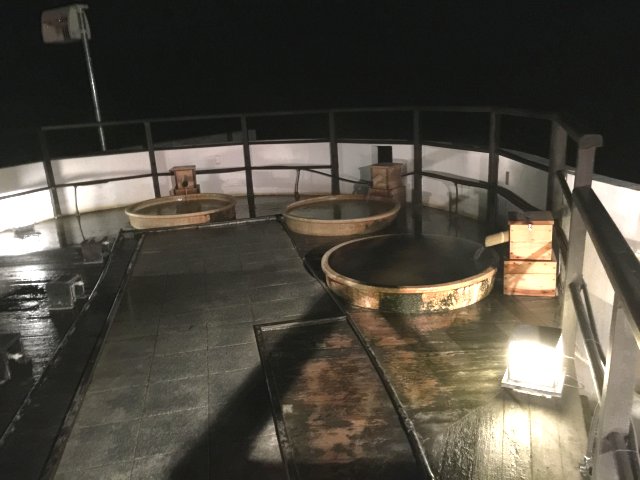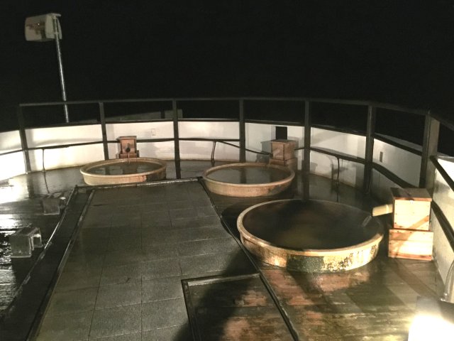 4)9F(屋上);展望露天風呂「天女の湯」と八角風呂、陶器風呂。