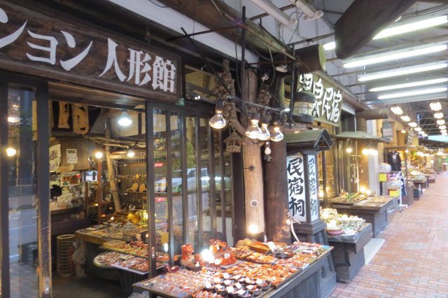・1Fには花見小路と呼ばれるロビー奥の通路ではお土産やショップなどが並んでいます。売店では北海道の名菓・海産物、鶴雅オリジナル品を発売。ここにもTHE NORTH FACEが入っています。