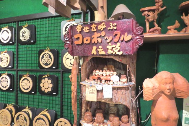 アイヌ文様の木彫、職人の創作作品が展示。おしゃれな小物や和雑貨なども発売。1Fの女子トイレが豪華できれいと連れが云ってました。