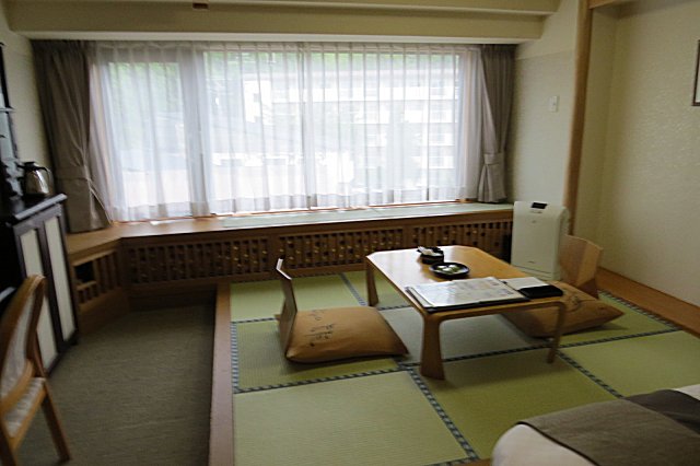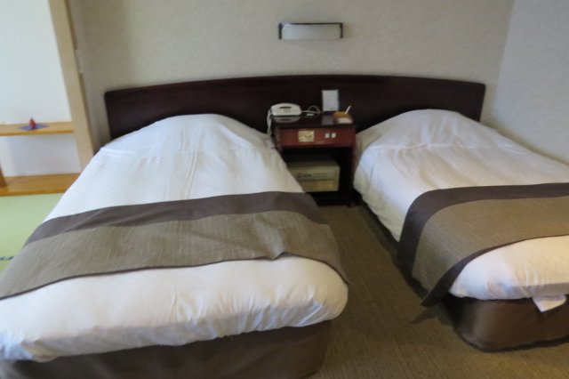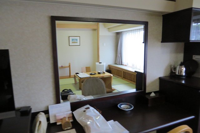 ■宿泊した部屋は別館の和洋室(45u)。和室部分とツインベットがある部屋。阿寒湖を望む広々とした和洋室で、眼下には阿寒湖が見渡せました。今回の旅で一番高い部屋(\68000/1泊2食,2名/1部屋)でした。