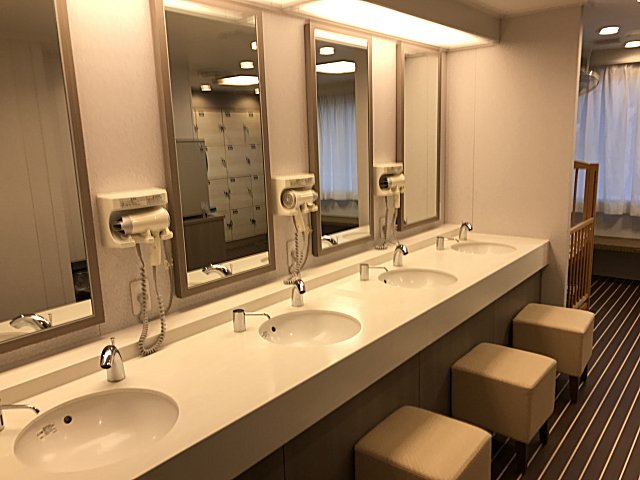 ・明るくて広い。窓からは海が見えて眺めは最高。湯は適温で良い。ジャグジーあり、サウナ併設。リンスインシャンプー、ボディーソープ、ドライヤー常備。
