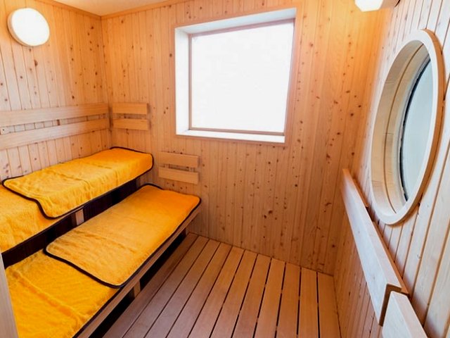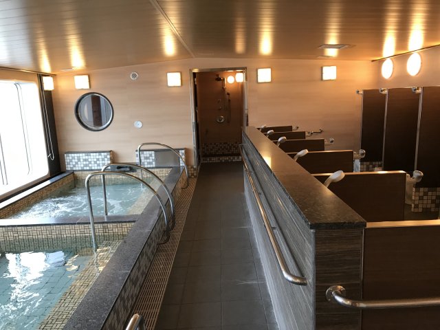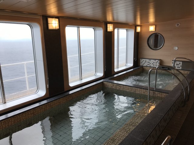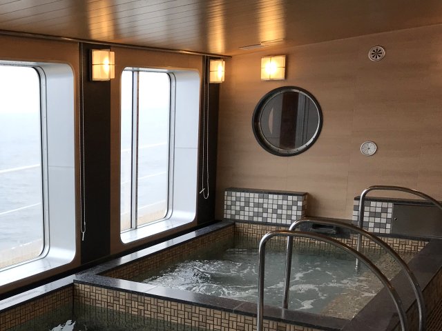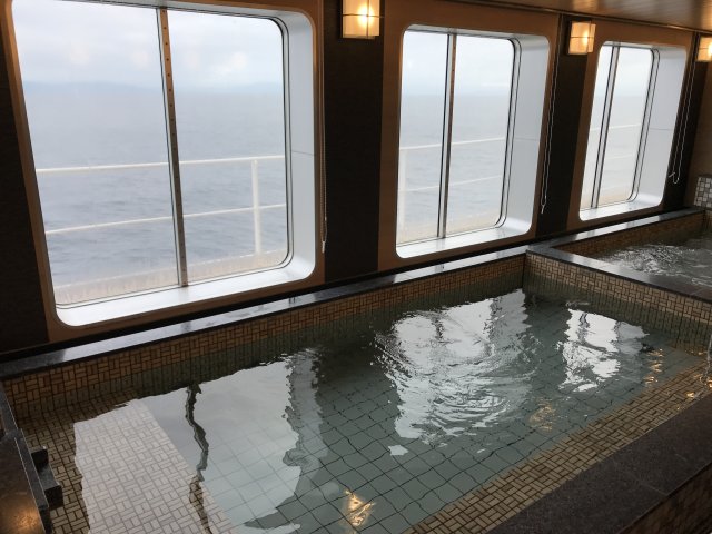 ・お風呂は海上銭湯という感じで、大海原を眺めながらのんびりと湯に浸かれます。サウナもあります。