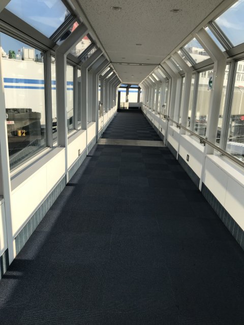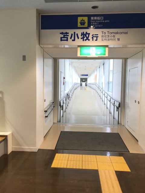 ・乗船案内で同乗者はTM2Fのボーディングブリッジを通り、乗船口より徒歩で乗船する。