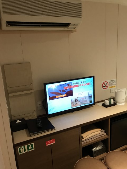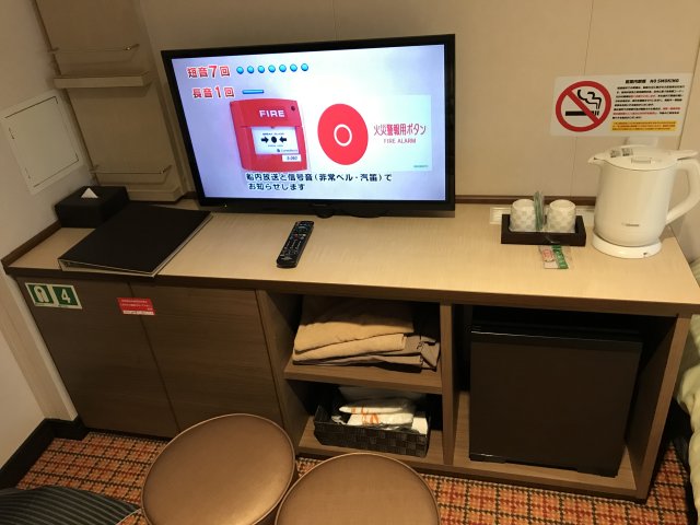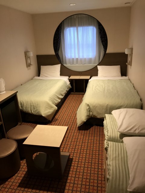 ・ベッド2・シャワー&トイレ・TV・冷蔵庫・電気ケトル・ドライヤー・冷暖房あり。エアコンの温度設定ができるのでよい。