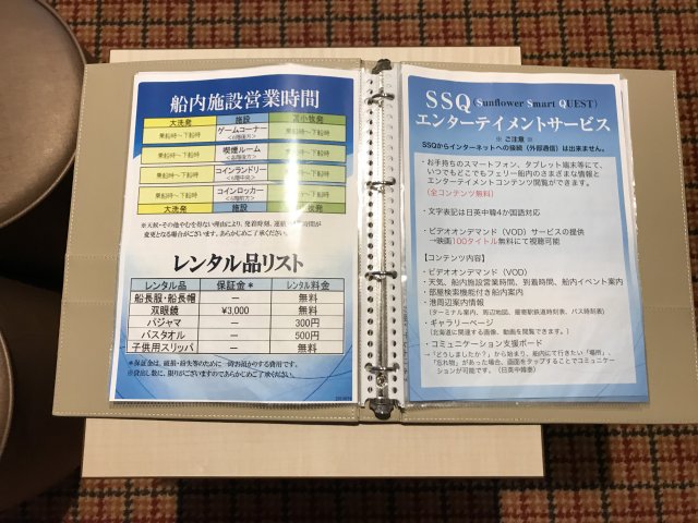 ・船内の施設は充実。売店・自販機・コインランドリーがあるので便利。