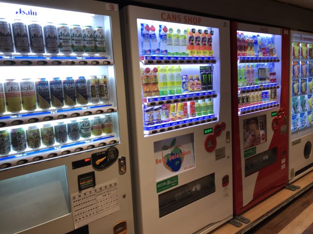 ・自販機にはビール・ジュース・カップ麺、アイス、お菓子、おつまみなどいろいろあり。