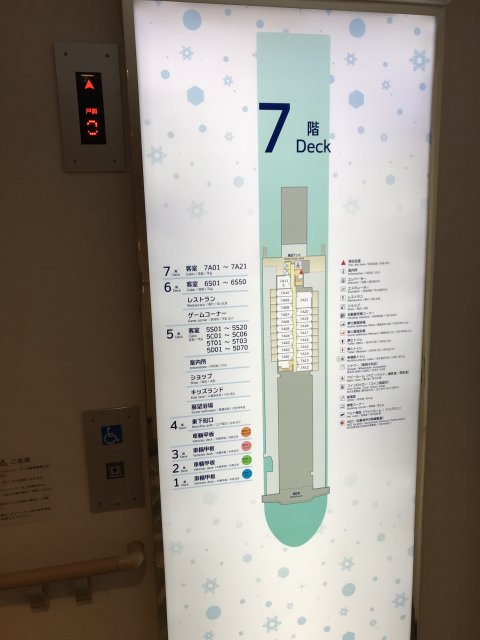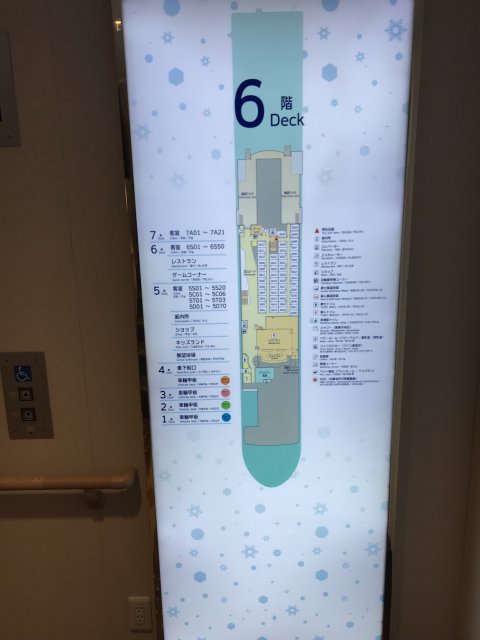 ・6F;展望デッキ,ラウンジ,レストラン,ゲーム,自販機,客室