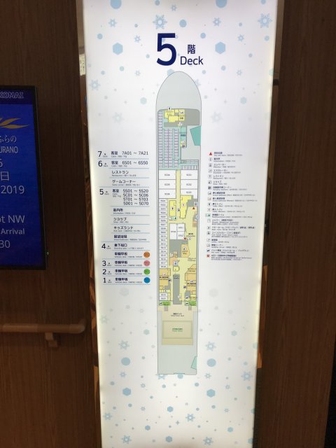 ・復路;<所要時間;19時間15分>苫小牧(18:45発)-(翌日14:00着)