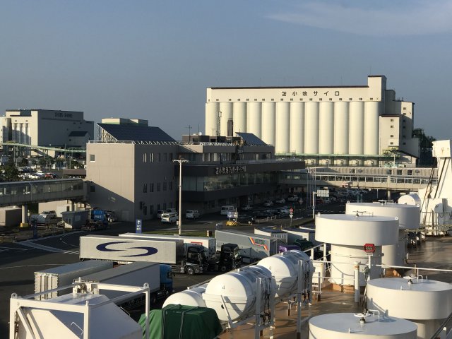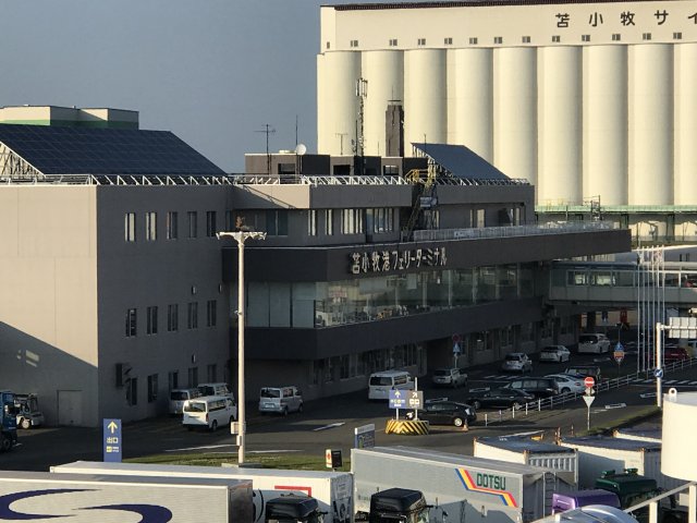 苫小牧西港のコンビナート地区が見えてくると間もなく着岸。苫小牧は北海道の海の玄関口で、太平洋航路の拠点。