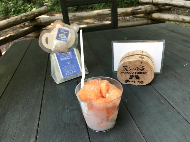 ・「彩の大地館」では麓郷の森のオリジナルグッズや富良野ゆかりの写真家や画家による作品などを販売。メロンの氷アイスが美味しかった。