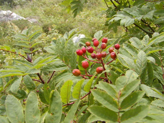 シロウマオウギ、ミヤマコゴメグサ、タテヤマアザミ、ウサギギクなどが咲いていた。ウラジロナナカマドの実が赤くなり始めているのに、まだミヤマキンポウゲがたくさん咲いていた。