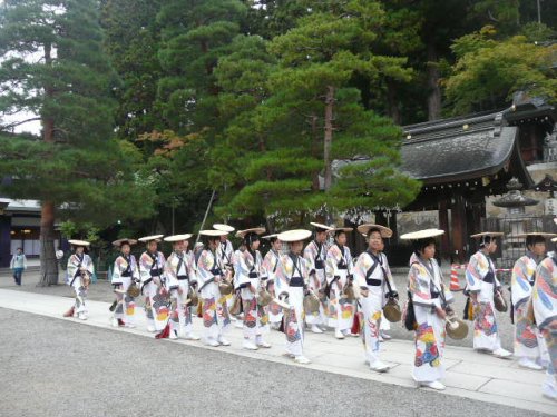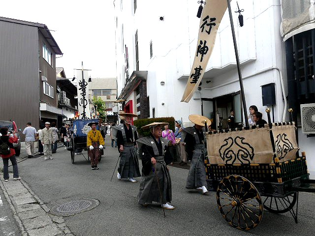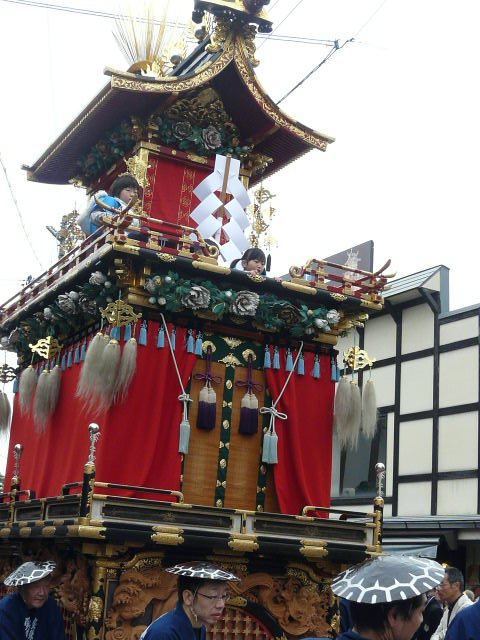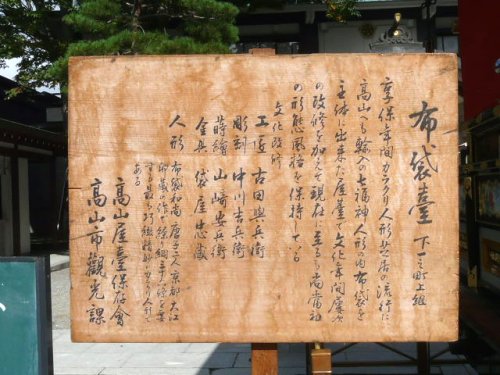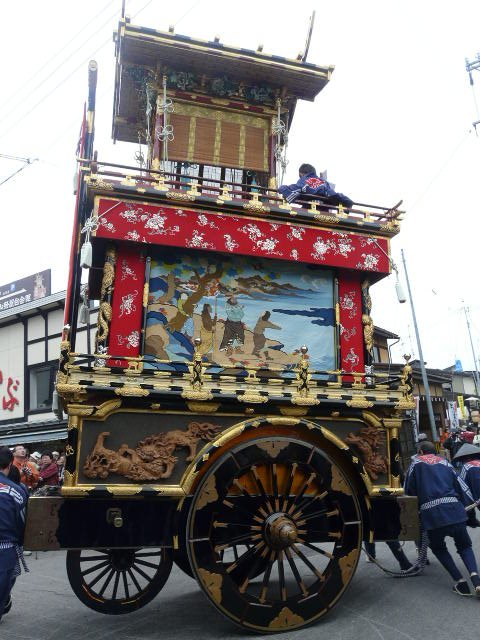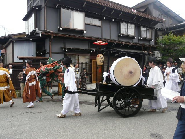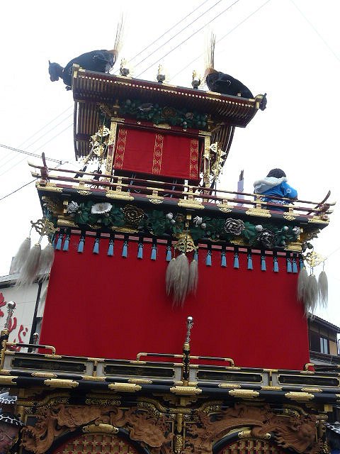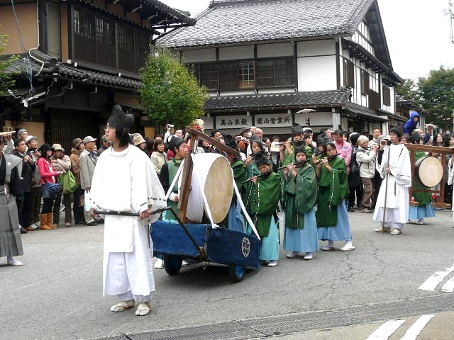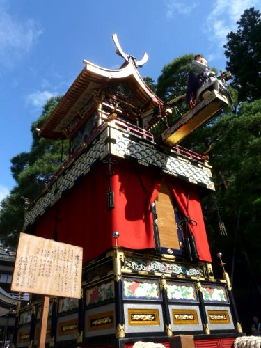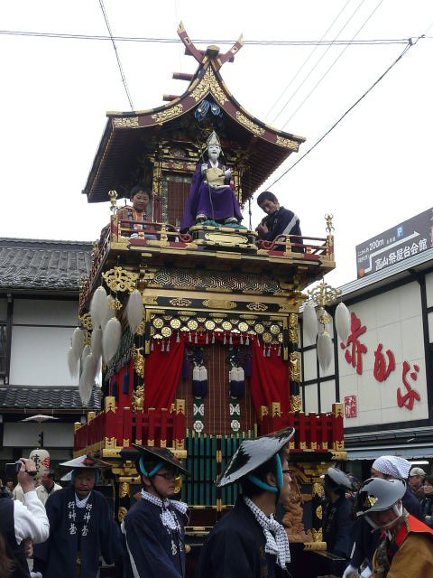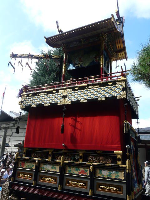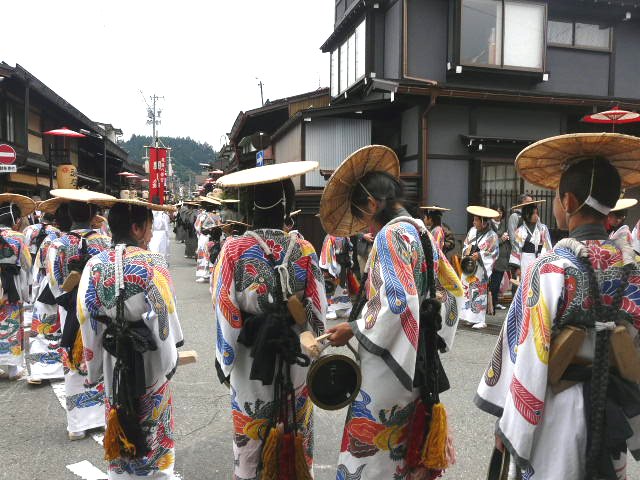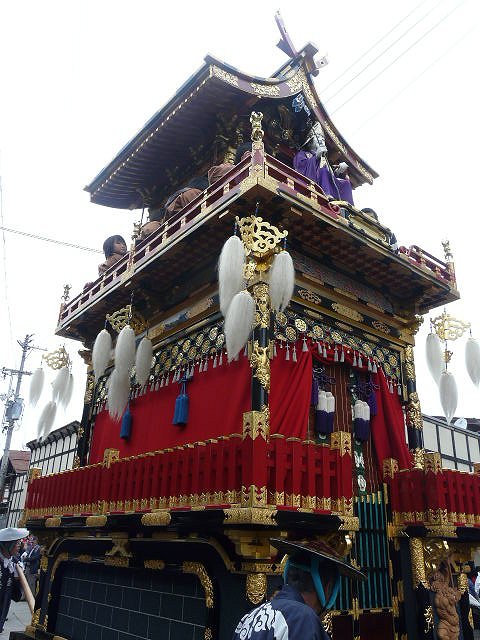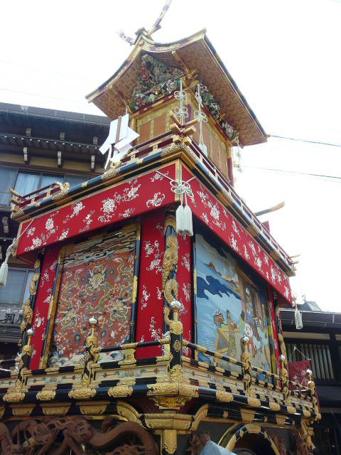 飛騨高山は青空が広がり、飛騨の匠が技を競った華麗な祭り屋台が屋台蔵から曳き出され、桜山八幡宮の表参道に勢ぞろいし、国指定重要有形民俗文化財の屋台の周りは観光客の人垣が幾重もできていた。屋台を飾る金銀の金具や刺しゅうが