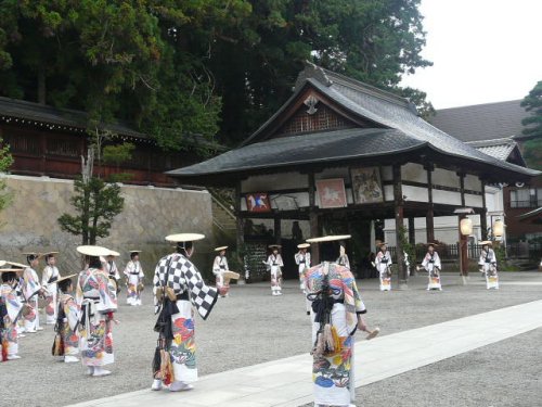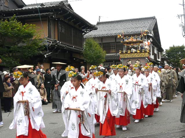 「春の山王祭」と「秋の八幡祭」の2つの祭の総称で国の重要無形文化財に指定。高山市桜町の「桜山八幡宮」の参道には11台の豪華絢爛な祭屋台が曳き揃えられた。飛騨の匠の技が光る屋台を間近で見ることができます。闘鶏楽、裃姿の
