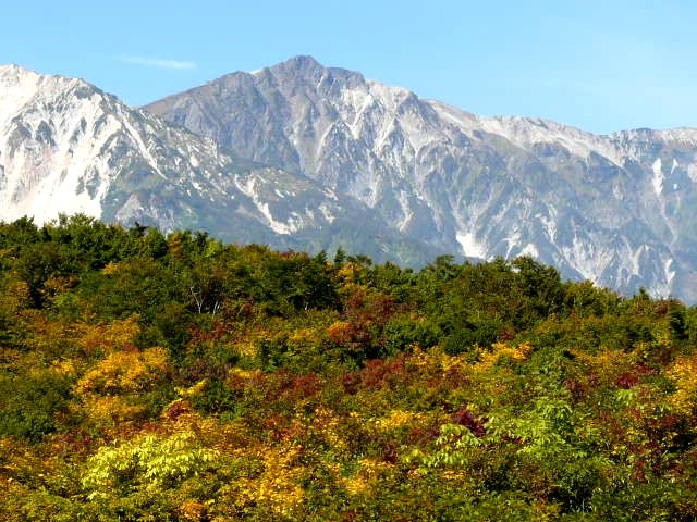 「秋の五龍岳・鹿島槍ヶ岳と八方尾根の紅葉」(八方尾根にて)