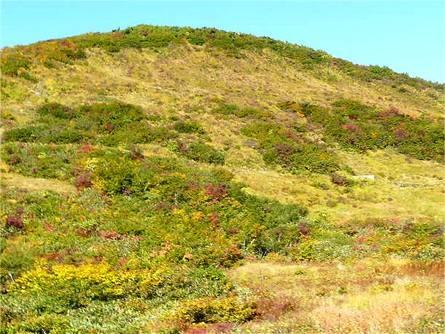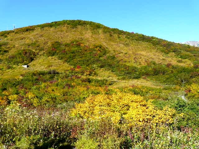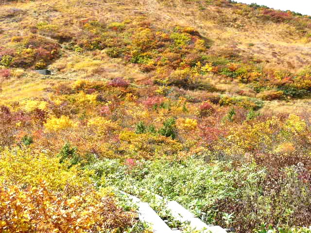■9/下-10/上;八方尾根上部の下ノ樺や上ノ樺、扇ノ雪田、丸山ケルンは草紅葉。