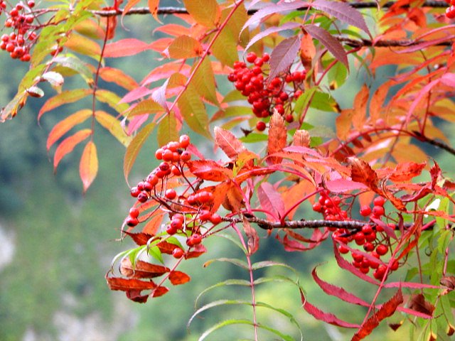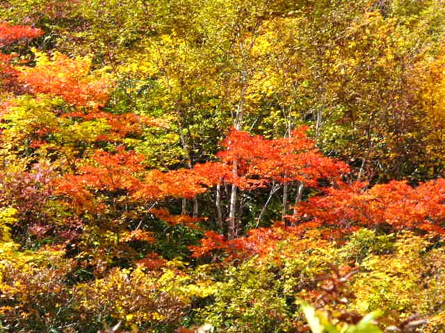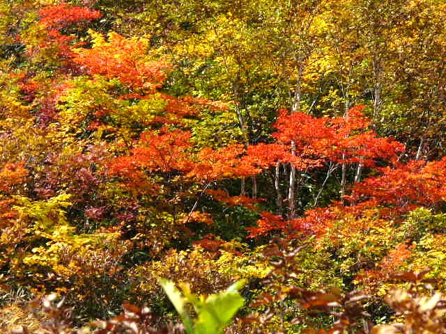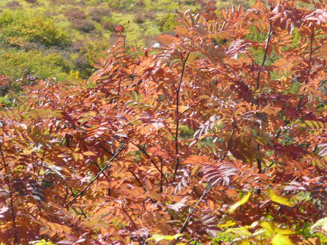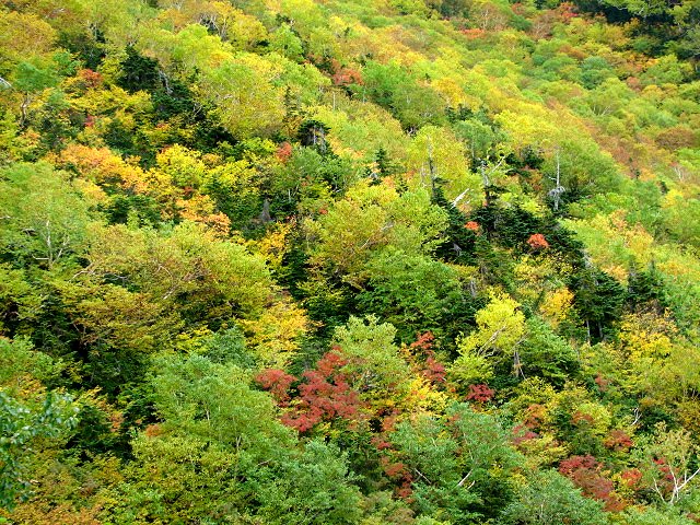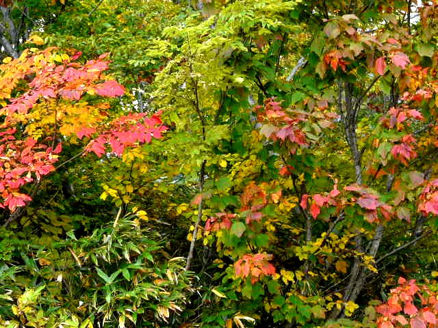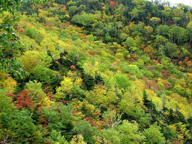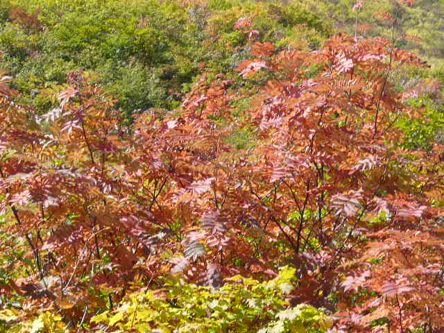 ナナカマドの赤、ダケカンバの黄色、ミネカエデの橙・黄色が美しい。(以下の写真は以前のものを含む)