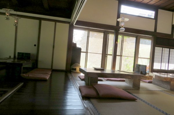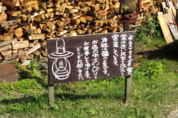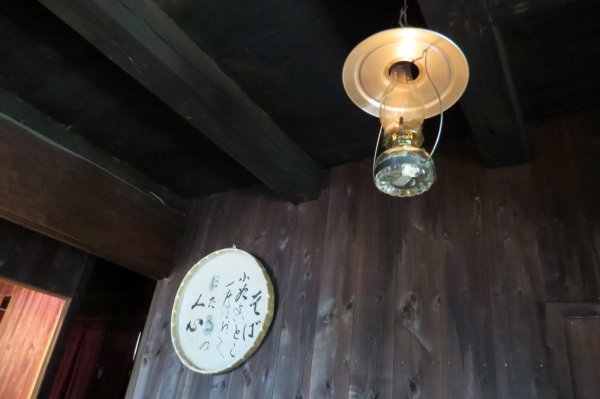 2)特徴;ランプが灯る古民家のお蕎麦屋さんで素朴でゆったりした雰囲気あり。囲炉裏端もあります。真木集落で小学生の頃、山村留学をしていた主人が築120年の古民家を改修して始めたという。トイレは昔のぼっとん。会計はすわって・・・。