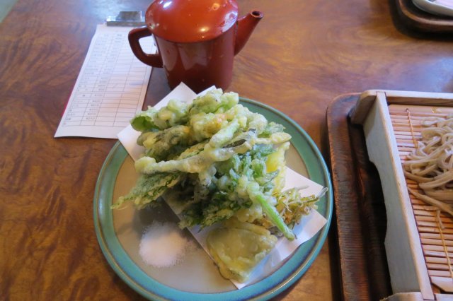 「お蕎麦と山菜の天ぷら」(春の小谷名産館にて)