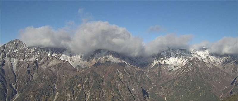 10/28;北ア「乗鞍岳」、「西穂・前穂・奥穂・北穂・涸沢・槍ヶ岳」、「常念岳・燕岳・大天井岳」、「立山」(室堂・弥陀ヶ原・黒部平)、「蓮華岳・爺ヶ岳・鹿島槍ヶ岳」などで初冠雪。