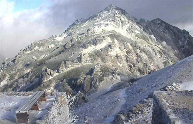 ■10/27;北ア「大天井岳」でも初雪・初冠雪。うっすらと雪景色。