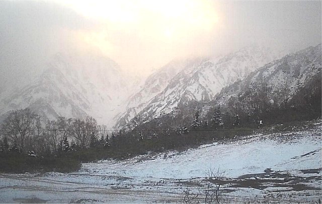 ■北ア各地で初雪・初冠雪。積雪は2-3cm。