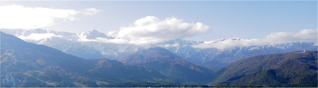 ■今日(10/28)の白馬は曇り・晴れ。朝の安曇野・大町・白馬の北アには雲がかかっています。雲が消えれば三段紅葉が観られそう。