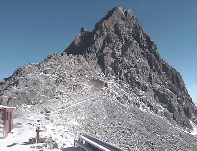 「初冠雪の乗鞍岳・剣ヶ峰」(2025.10.29;気象庁(乗鞍高原) liva cam)