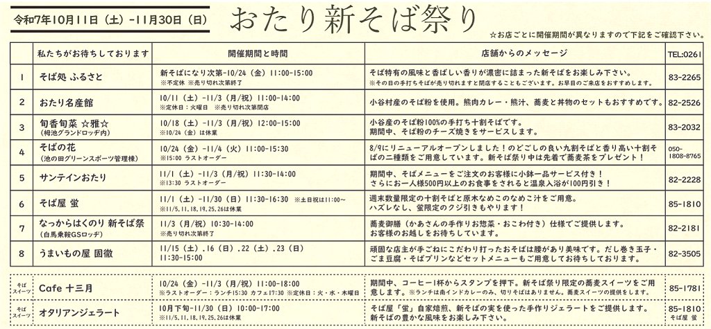 ■2025.10/11-11/30;小谷村で「第22回おたり新そば祭り」開催(再掲)