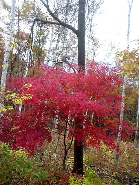 ■We revel in the beauty of the fall colors. The leaves of the trees turn red,orange and yellow in the forest near my vill.