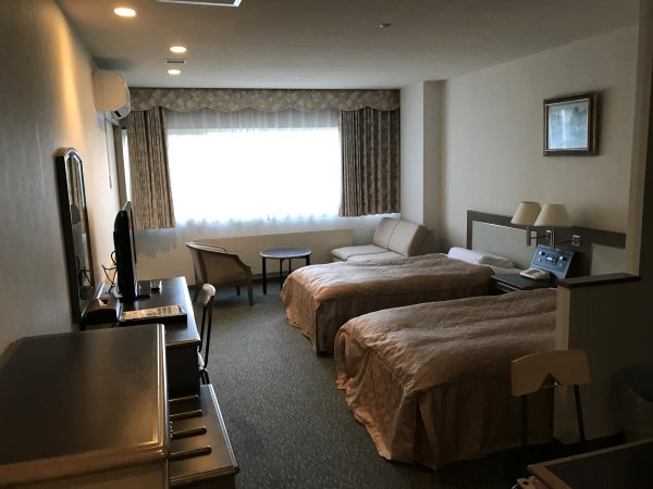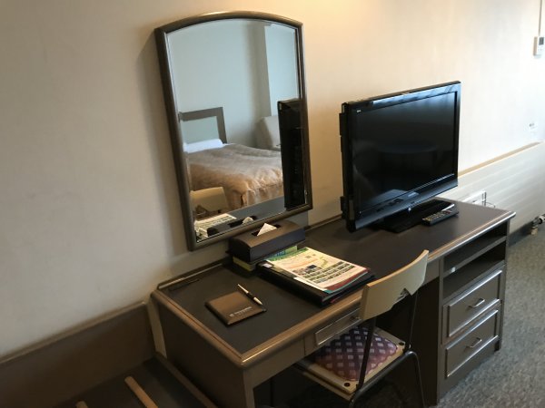 この日はスーペリアツインのキッチン付コンドミニアムタイプ(33u)で広い部屋。眼下には安曇野の街が望めます。部屋には薄型TV,電話,湯沸かし,お茶セット,冷蔵庫,ドライヤー,電気スタンド,冷暖房,ユニットバス,洗浄トイレ。