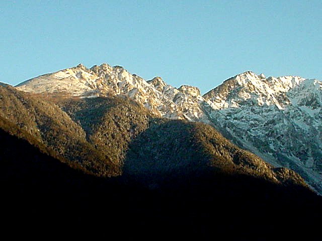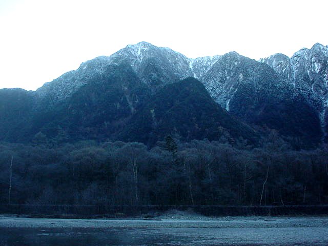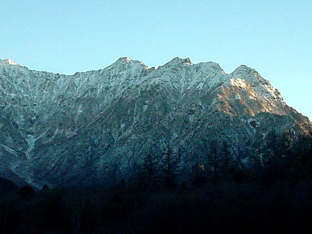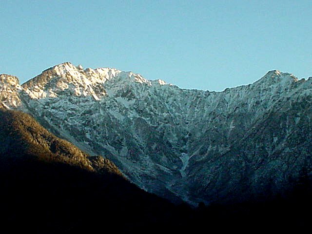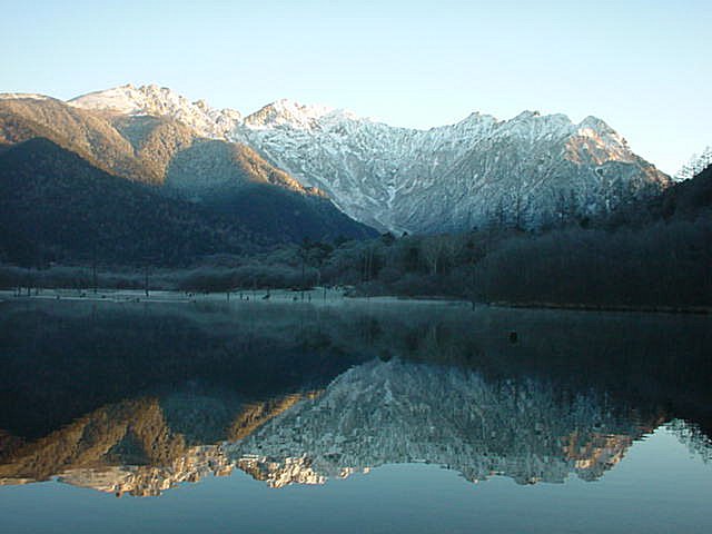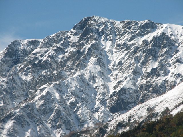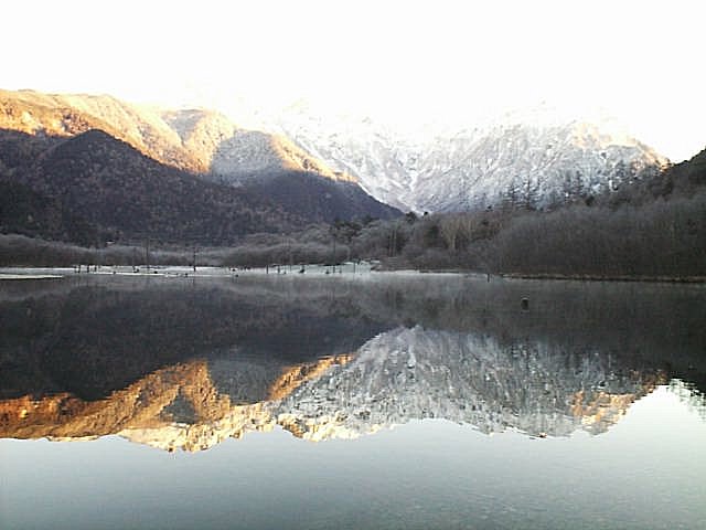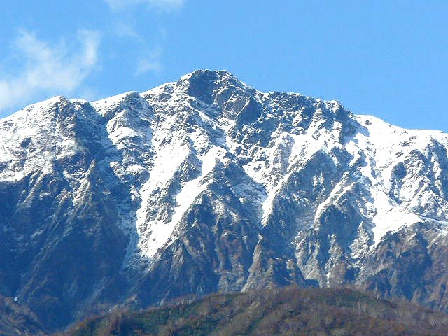 ■今日(11/27)の白馬は晴れ。白馬三山がさらに白さを増した。安曇野・大町は朝霧に覆われた。