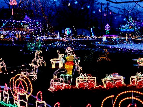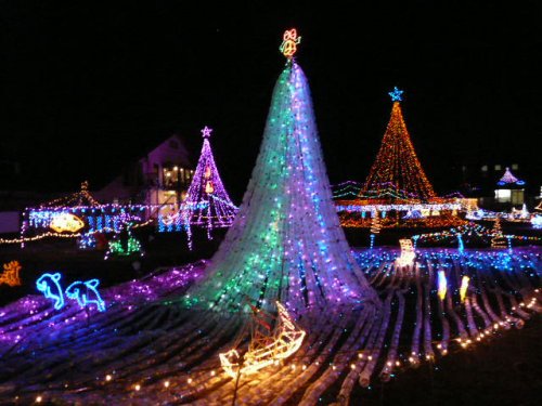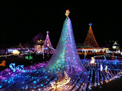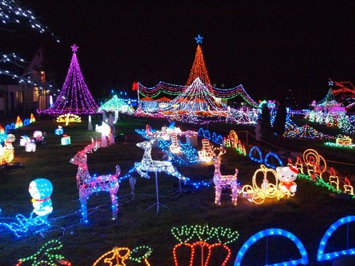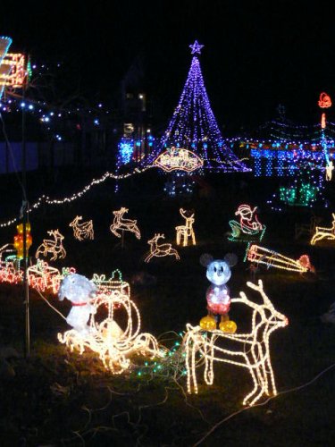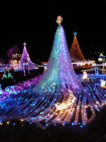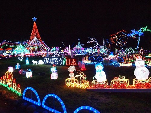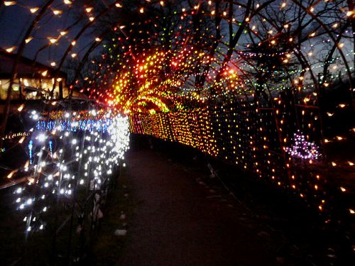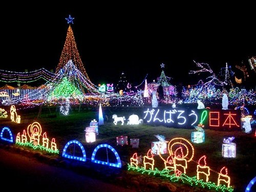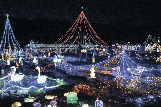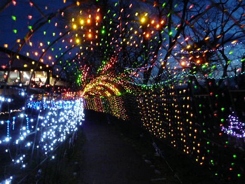 ※「ビレッジ安曇野」では夜間ライトアップ、2003年1回目は電球1万個で開催。2004年は豊科町合併50周年で「光のページェント」の一環として電球2万個を飾った。地元の若者同士が交流を深め、地域活性化につなげようと始まった。